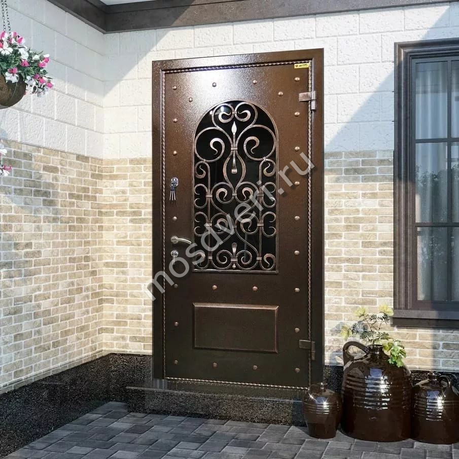 Входные двери со стеклом и ковкой в Плавске